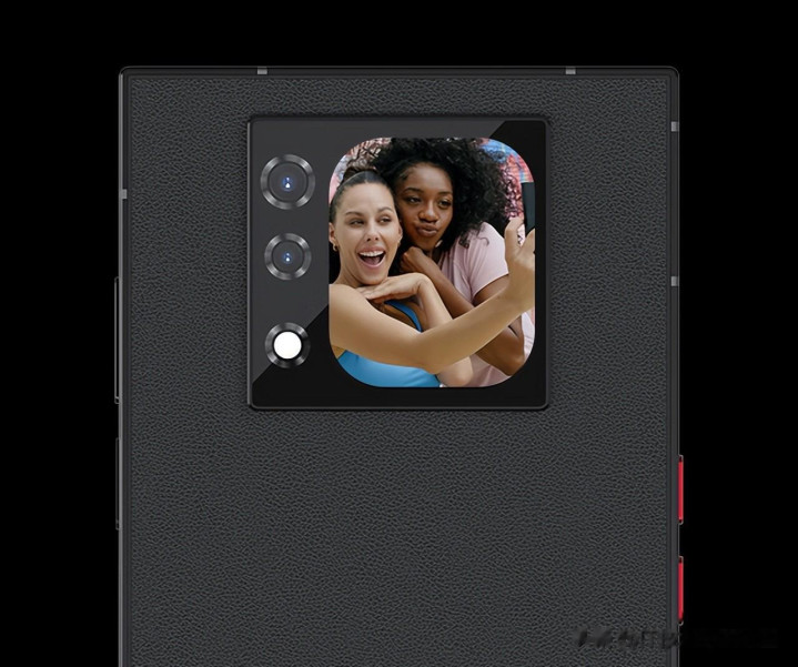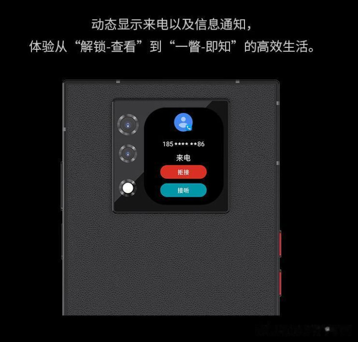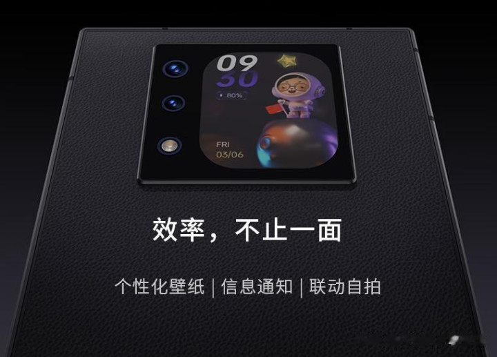 机身背面则是一块 2 英寸的副屏,分辨率 140x502,支持自定义壁纸,还能作为辅助自拍使用。